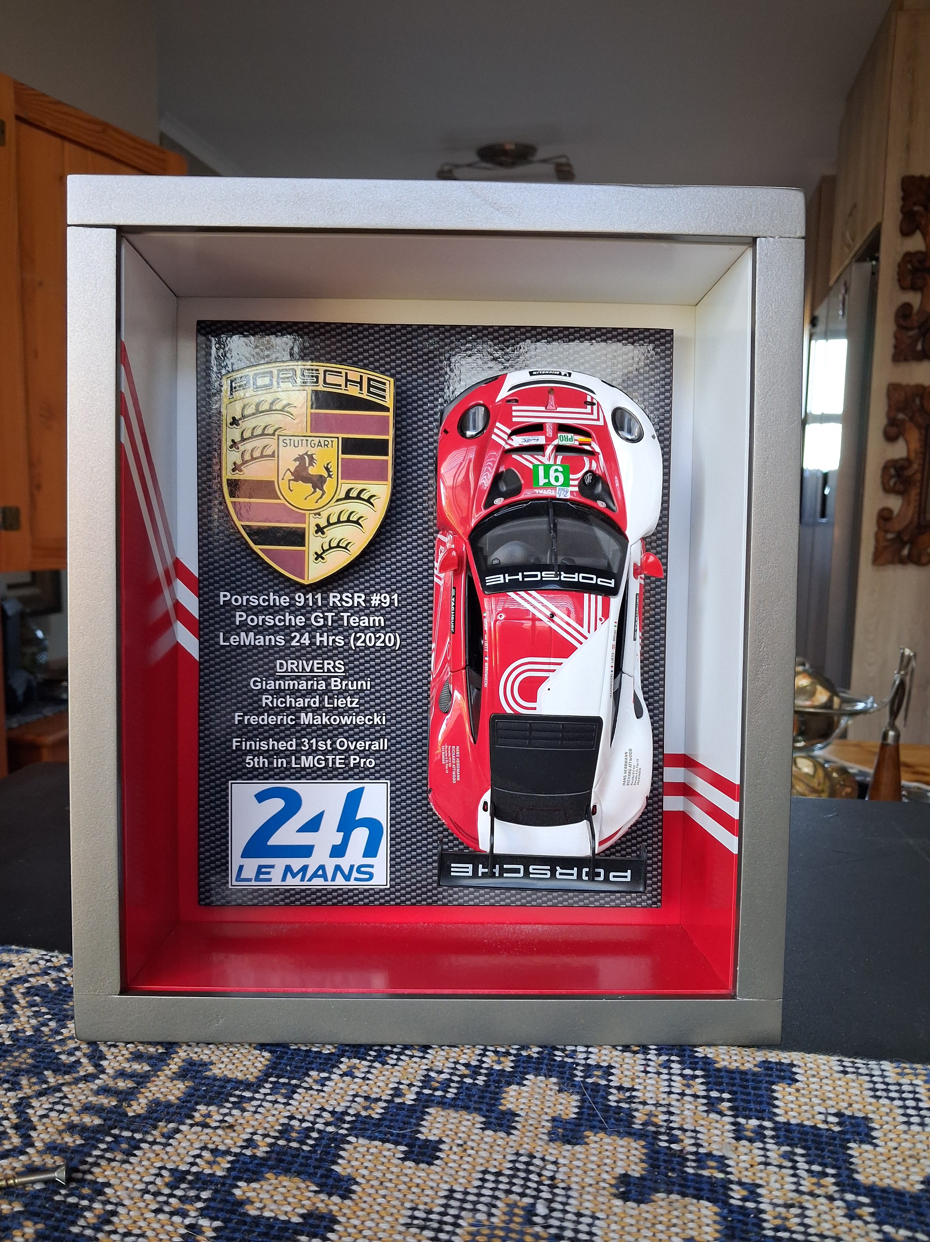 Display box for a 1/24 Scale Porsche racing car, built for a local collector.