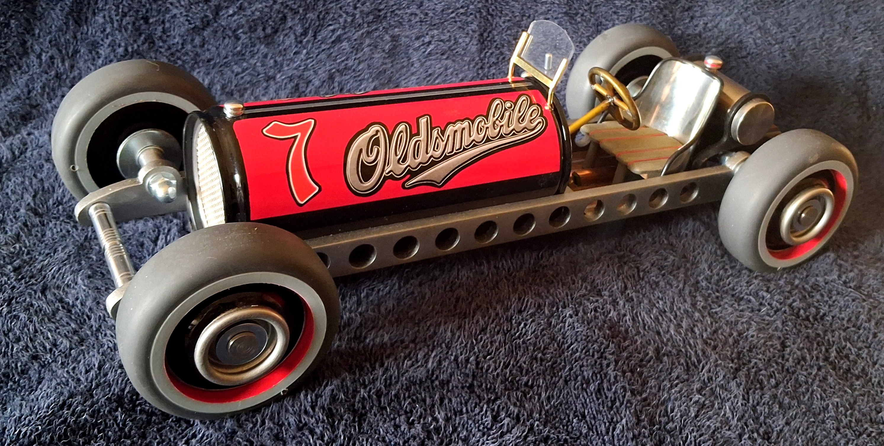 Aerosol Spray Can Race Car I. The first Aerosol Spray Can Race Car sits in my display cabinet.